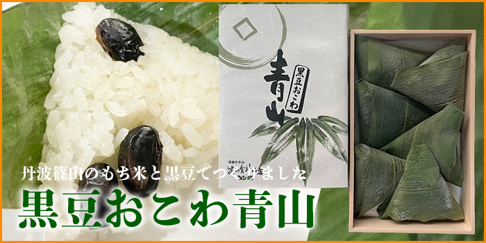 丹波篠山産の黒豆ともち米を使用しやさしい味わいの黒豆おこわです。原材料は黒豆、もち米、塩といりごま。丹波黒豆本来の素朴な美味しさが自慢です。