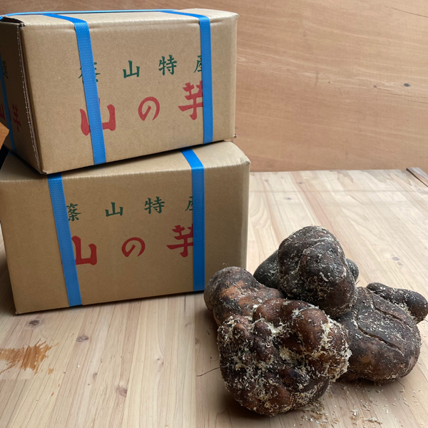 山の芋は外観のごつごつした見た目とは対照的に肉質は純白できめ細やかな粘りがあります。 またアク抜きをしてからおろしていただくと黒ずみにくいですが、そのままでも家庭で召し上がるのには充分です。